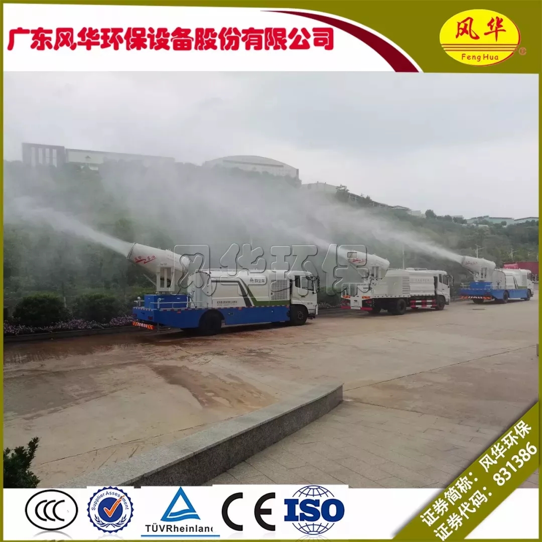 這種霧炮車,正是來自于我們風華環(huán)保所制,集灑水、除塵、治霾等功能于一身。結(jié)構(gòu)是一輛大型水車,上面安裝大口徑霧炮噴霧機,具有灑水車和噴霧車的雙重功能。一次能裝8噸自來水,炮筒可以360度隨意旋轉(zhuǎn),噴出的水霧可以起到除塵降溫的作用。
