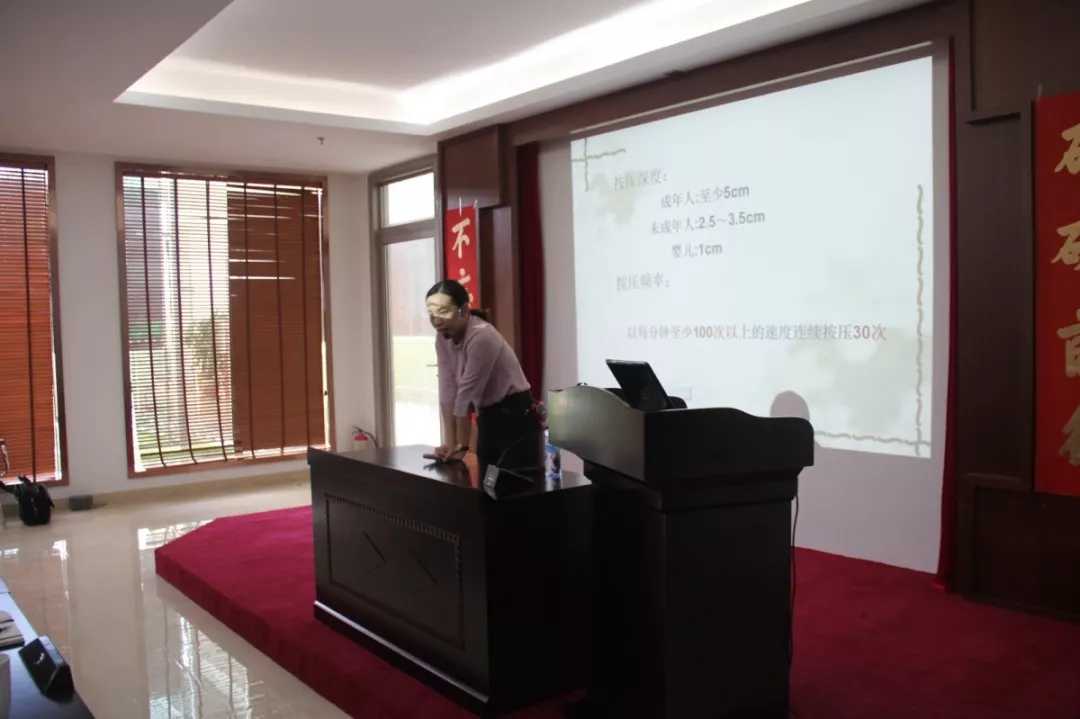 講座中,應老師深入淺出地講解了CPR現(xiàn)場緊急救護知識(如胸外按壓、開放氣道、人工呼吸、自救互救)和職場人員常見病的預防及改善(如頸椎病、腰肌勞損、靜脈曲張、腸道傳染病、輻射等),并親自進行示范,教導員工學習心肺復蘇。