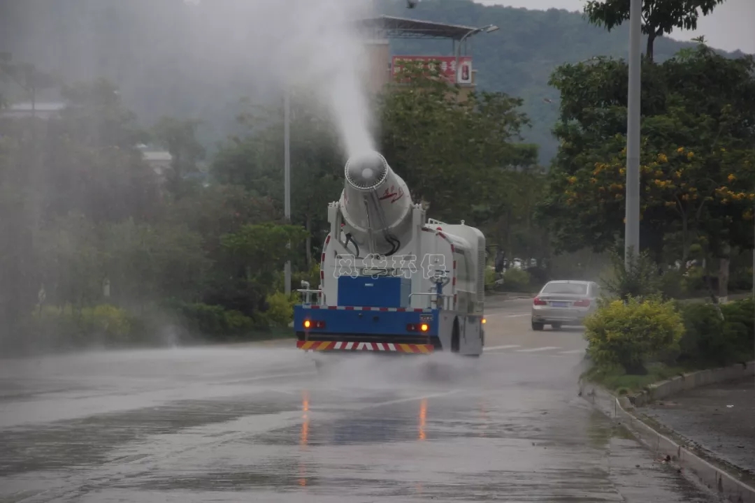 水炮抑塵車結(jié)構(gòu)是一輛大型水車,上面安裝大口徑霧炮噴霧機(jī),具有灑水車和噴霧車的雙重功能。一次能裝8噸自來水, 炮筒可以360度隨意旋轉(zhuǎn), 噴出的水霧可以起到除塵降溫作用。