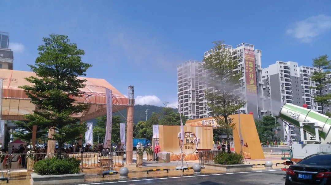風華霧炮助力興寧泰山-盛景豪庭營銷中心開放現(xiàn)場降溫消暑