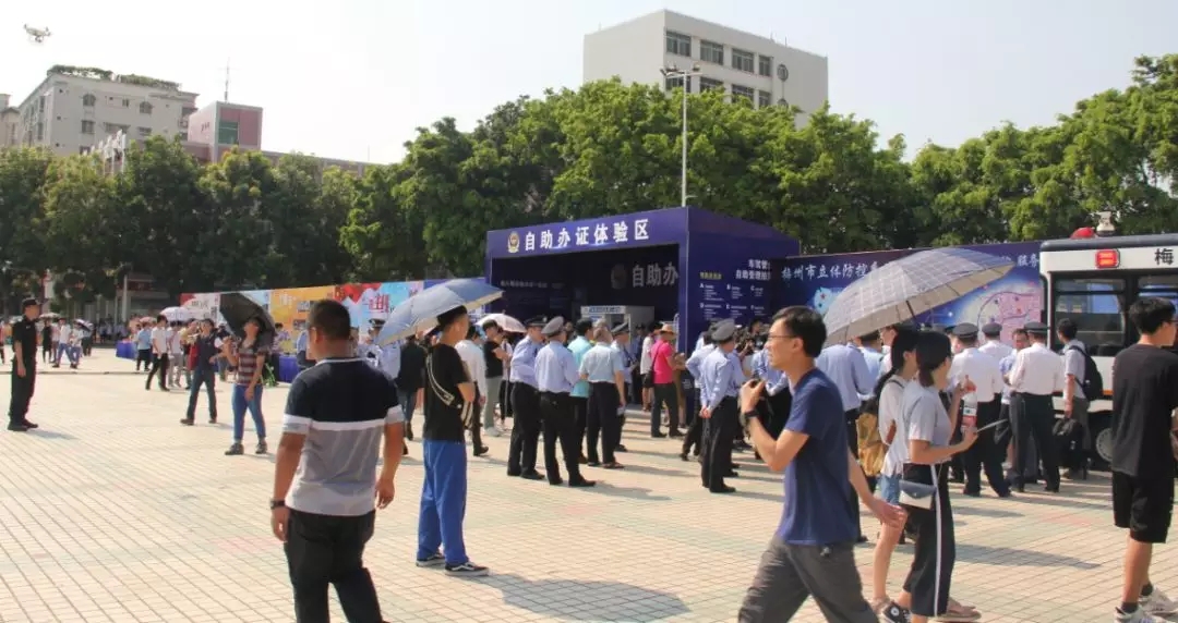 5月29日上午,梅州市公安局在劍英體育館門前舉行公安開放日暨“移動式一窗通辦”“顯性用警”啟動儀式,展示各種前沿科技應(yīng)用和高大上的警務(wù)裝備