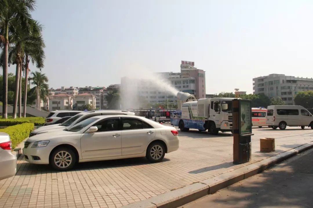 風(fēng)華霧炮車在廣場外圍進行降溫消暑